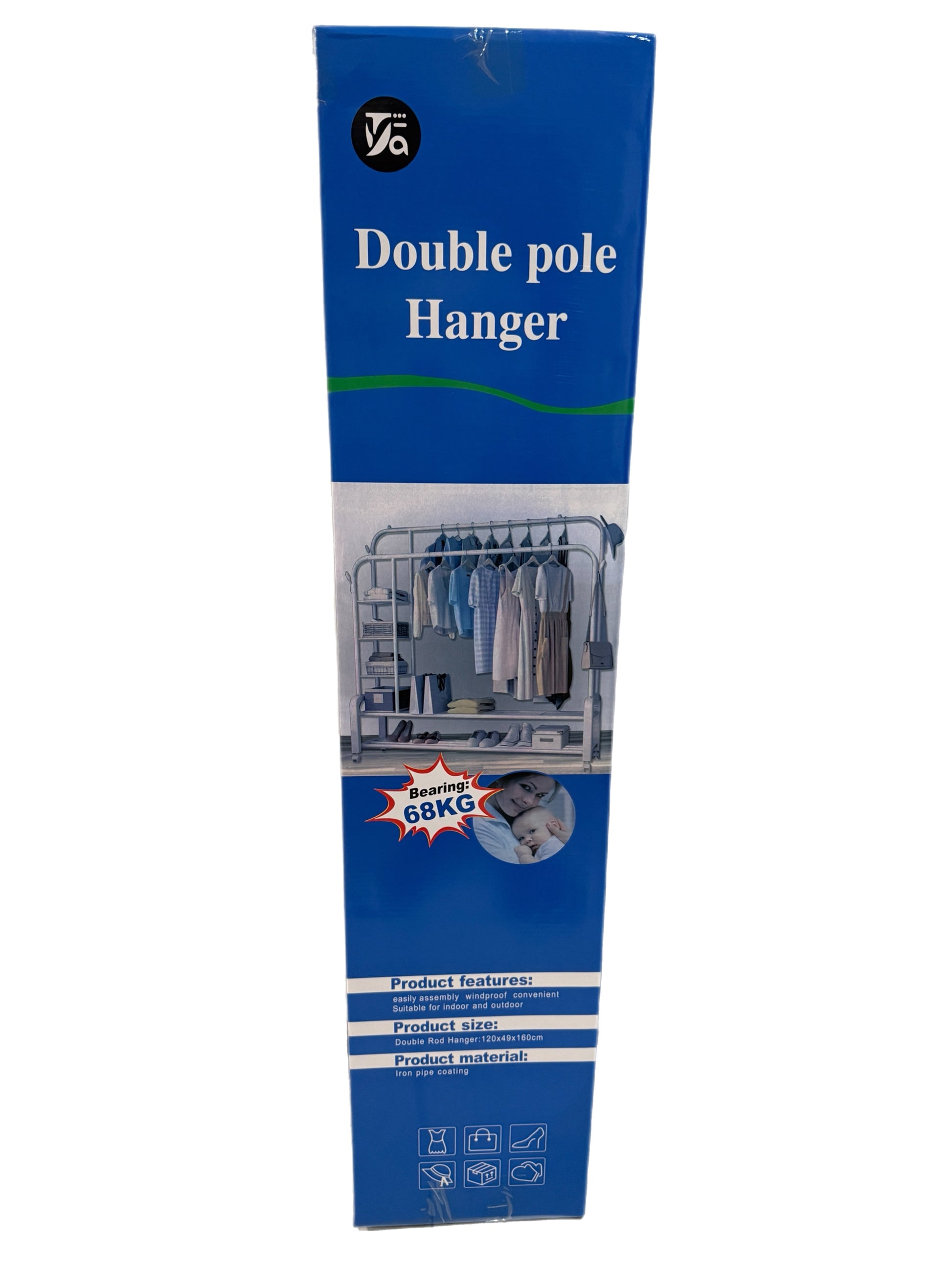 Rack para ropa y zapatos. Cuenta con doble espacio de perchero para ropa y estantes para ropa y zapatos.Dimensiones: 120x49x160 cm.
